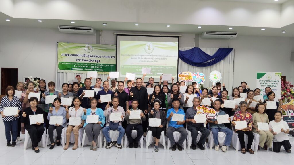 วันที่ 16 กรกฎาคม 2567 เวลา 08.30 น. นางสาววราภรณ์ พิมสาร หัวหน้าสำนักงานกองทุนฟื้นฟูและพัฒนาเกษตรกร สาขาจังหวัดลำพูน ดำเนินการโอนหลักประกันคืนเกษตรกรที่ปิดบัญชีและไถ่ถอนหลักประกันคืนให้แก่เกษตรกร จำนวน 2 ราย ได้แก่ นายจรูญ ปันสีสุข จำนวน 1 แปลง เนื้อที่รวม 2 งาน 77 ตารางวา และ นางคำแปง ทาอ้าย จำนวน 1 แปลง เนื้อที่รวม 1 งาน 47.4 ตารางวา ณ สำนักงานที่ดินอำเภอป่าซาง จังหวัดลำพูน