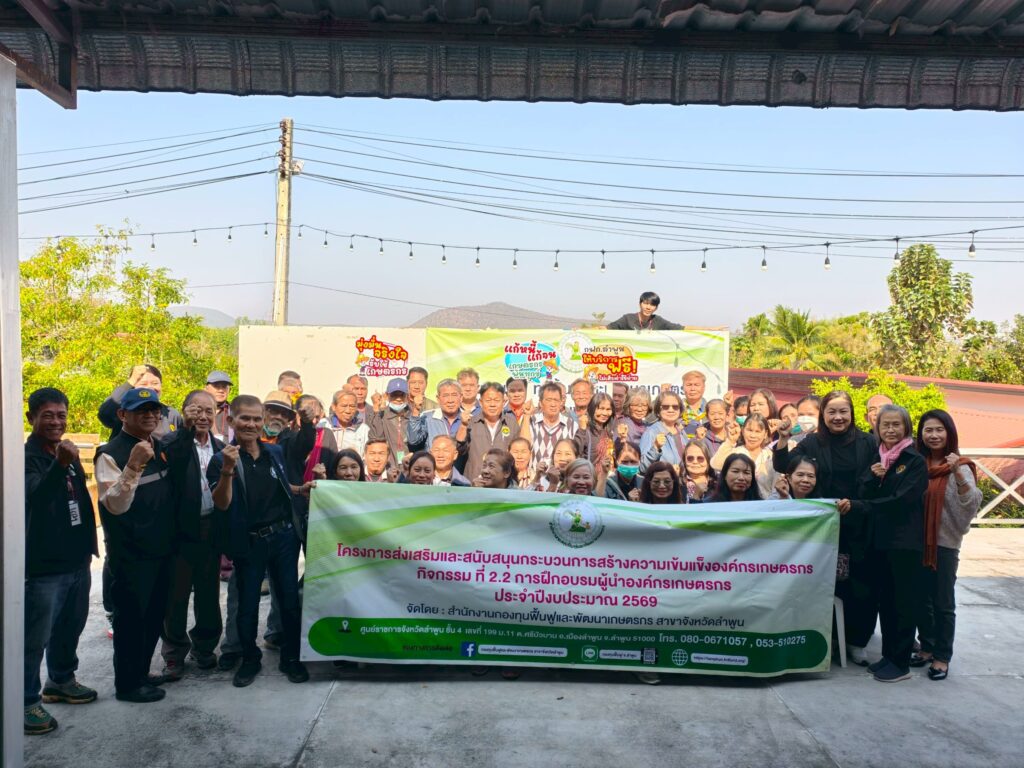 วันที่ 29 มกราคม 2569 นางสาวสิริลักษณ์ อุตเถิน หัวหน้าสำนักงานกองทุนฟื้นฟูและพัฒนาเกษตรกร สาขาจังหวัดลำพูน พร้อมด้วย เจ้าหน้าที่สำนักงาน ดำเนินการจัด “ โครงการส่งเสริมเเละสนับสนุนกระบวนการสร้างความเข้มเเข็งขององค์กรเกษตรกร กิจกรรมที่ 2.2 (Kick off) ฝึกอบรมผู้นำองค์กรเกษตรกร รุ่นที่ 1 โดยมี นายภาณุพงศ์ ไชยวรรณ์ ประธานคณะอนุกรรมการ จังหวัดลำพูน เป็นประธานเปิดโครงการฯ เเละ นางสาวสิริลักษณ์ อุตเถิน หัวหน้าสำนักงานกองทุนฟื้นฟูและพัฒนาเกษตรกร สาขาจังหวัดลำพูนกล่าวรายงาน ณ ห้องประชุมคาระวี รีสอร์ท ตำบลทาทุ่งหลวง อำเภอแม่ทา จังหวัดลำพูน
