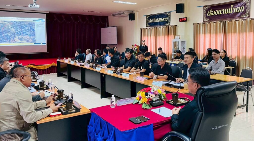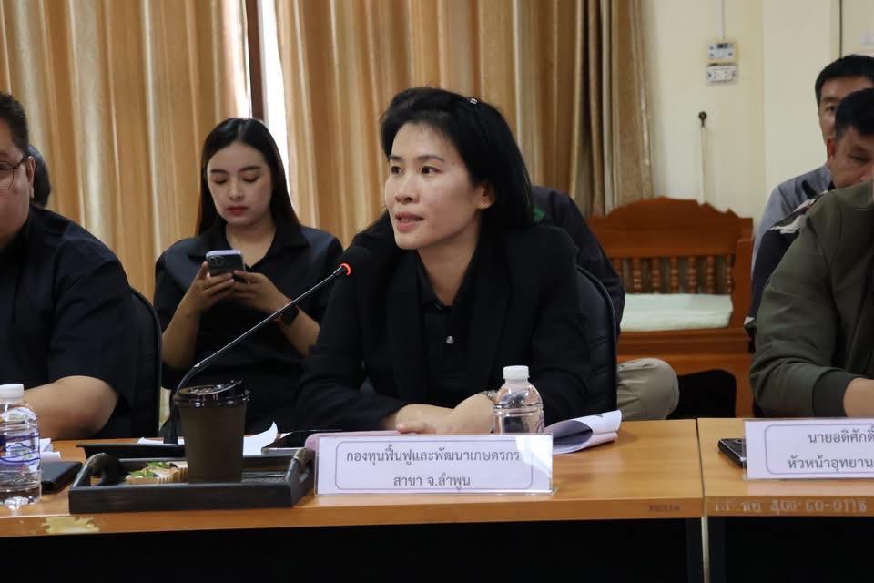 วันอังคารที่ 25 พฤศจิกายน 2568 นางสาวสิริลักษณ์ อุตเถิน หัวหน้าสำนักงานกองทุนฟื้นฟูและพัฒนาเกษตรกร สาขาจังหวัดลำพูน มอบหมายให้ นางสาววรรณนิภา อกตัน พนักงานอาวุโส เข้าร่วมประชุมหารือแนวทางการช่วยเหลือประชาชนที่ได้รับผลกระทบจากน้ำท่วม และตรวจสอบแนวเขตน้ำท่วมตามประกาศของเขื่อนภูมิพล จังหวัดตาก โดยมีนายประเชิญ สมองดี นายอำเภอลี้ จังหวัดลำพูน เป็นประธานในการประชุม เพื่อเร่งสำรวจและประเมินความเสียหายของพืชผลทางการเกษตร ติดตามและแจ้งเตือนสถานการณ์น้ำให้ประชาชนรับทราบอย่างต่อเนื่อง เร่งทำแผนฟื้นฟูหลังน้ำลดและการสนับสนุนด้านอาชีพและเมล็ดพันธุ์พืชเพื่อฟื้นฟูพื้นที่เกษตรกรรม ณ ห้องประชุมเทศบาลตำบลก้อ อำเภอลี้ จังหวัดลำพูน