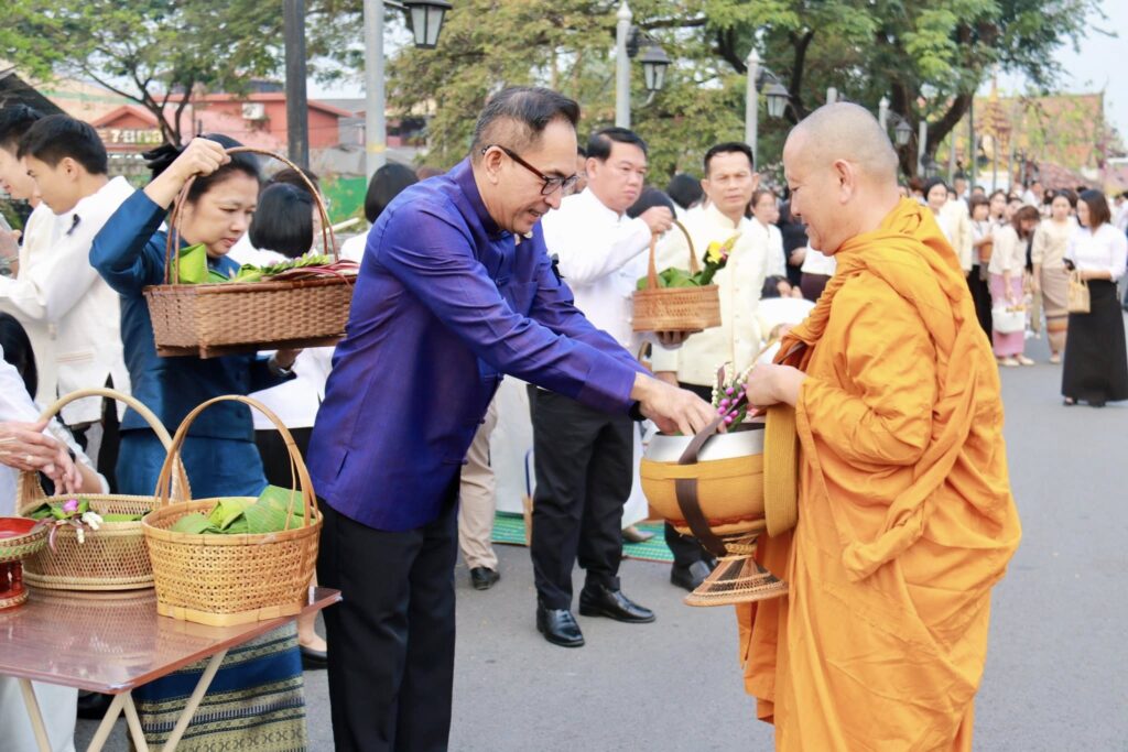 วันที่ 6 กุมภาพันธ์ 2569 นางสาวสิริลักษณ์ อุตเถิน หัวหน้าสำนักงานกองทุนฟื้นฟูและพัฒนาเกษตรกร สาขาจังหวัดลำพูน และนางสาวอาศิตา รังสรรค์ ผู้ปฏิบัติงานสำนักงานสาขาจังหวัดลำพูน ร่วมทำบุญตักบาตรพระสงฆ์ ภายใต้โครงการ “หิ้วตะกร้า นุ่งผ้าไทย ใส่ใจวิถีธรรม” ประจำปีงบประมาณ พ.ศ. 2569 ซึ่งกำหนดจัดขึ้นทุกวันศุกร์ในสัปดาห์แรกของเดือน ระหว่างเดือนมีนาคมถึงเดือนกันยายน 2569 นายปิยพงศ์ ชูวงศ์ ผู้ว่าราชการจังหวัดลำพูน นำหัวหน้าส่วนราชการ และประชาชนชาวจังหวัดลำพูน เข้าร่วมกิจกรรมอย่างพร้อมเพรียง ท่ามกลางบรรยากาศที่อบอุ่นและเปี่ยมด้วยศรัทธา ณ บริเวณสะพานท่าสิงห์ หน้าวัดพระธาตุหริภุญชัย วรมหาวิหาร ตำบลในเมือง อำเภอเมืองลำพูน