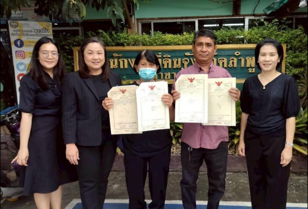 นางสาวสิริลักษณ์ อุตเถิน หัวหน้าสำนักงานกองทุนฟื้นฟูและพัฒนาเกษตรกร สาขาจังหวัดลำพูน โอนกรรมสิทธิ์หลักทรัพย์และซื้อทรัพย์คืน (NPL)ให้กับเกษตรกร 7 ราย จำนวน 10 แปลง เนื้อที่รวมทั้งหมด 15 ไร่ 2 งาน 24.8 ตารางวา เป็นเงิน 2,835,007.95 บาท ณ สำนักงานที่ดินจังหวัด สาขาป่าซาง
